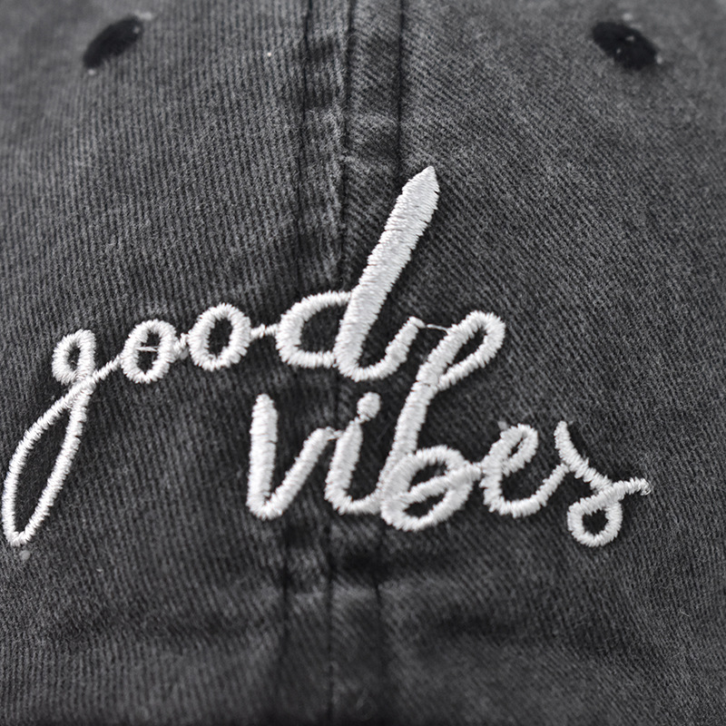 Washed Cotton Baseball Cap Good Vibes Embroidery Small Letter Distressed Hat-1560