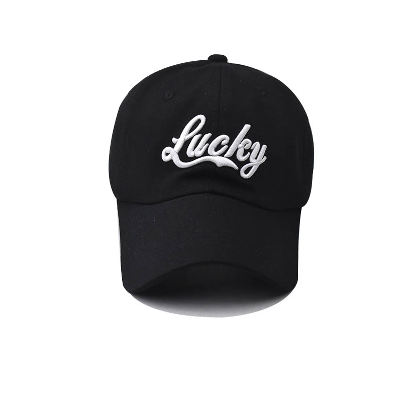 New Cotton Baseball Cap with Lucky Letter Embroidery Outdoor Stylish Duckbill Hat for Men & Women-2259